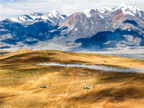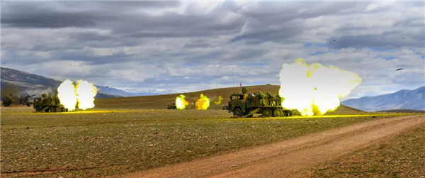 同時,各聯(lián)合戰(zhàn)斗群做好了發(fā)起沖擊前的最后準(zhǔn)備,各攻擊力量在坦克火力的掩護(hù)下,快速向“敵”發(fā)起進(jìn)攻,方圓幾十公里內(nèi),遠(yuǎn)程火炮和各種車載武器,構(gòu)成了遠(yuǎn)近一體的聯(lián)合火力打擊體系,對頑抗之“敵”展開最后清剿。此次演習(xí),共設(shè)置各類靶標(biāo)1000余個,全面檢驗(yàn)了各類型火力的打擊效能和部隊(duì)在高海拔地區(qū)的突擊能力。