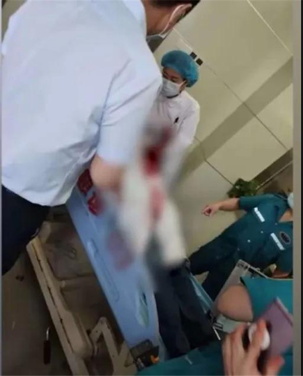 “事情就發(fā)生在孟主任的診室,當(dāng)時這位患者的第一刀是準(zhǔn)備刺脖子的,但是后來孟主任用胳膊擋了一下,所以才砍到了胳膊,我聽到聲就立馬趕過去了,當(dāng)時孟主任已經(jīng)被砍了。”