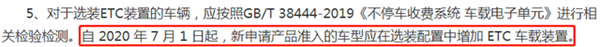 也就是說到明年1月1日之后,ETC裝置將成為汽車的一項自帶配置。