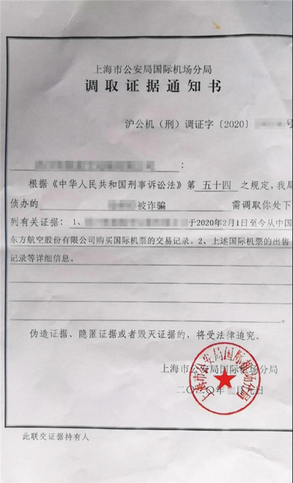 8月9日,宋剛收到上海市公安局國際機場分局調取證據通知書,得知內部有人員私自代理機票,最終以涉嫌職務侵占罪被刑事拘留。目前,上海和北京公安成立了專案組,以詐騙形式立案調查,“有些旅客知道了去找代理人,代理人只好把錢退給他們。”