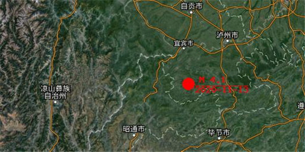 中國地震臺網正式測定:11 月 13 日 03 時 18 分在四川宜賓市珙縣(北緯 28.17 度,東經 104.73 度)發生 4.1 級地震,震源深度 6 千米。初估震中烈度約 6 度,距貴州省政府所在地 265 公里。
