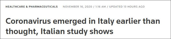 報道稱,早在今年 3 月就有意大利研究人員表示,去年第四季度,意大利輪巴第大區(qū)嚴(yán)重肺炎和流感的病例數(shù)顯著高于正常水平,這表明新冠病毒在意大利的傳播時間可能比此前認(rèn)為的更早。