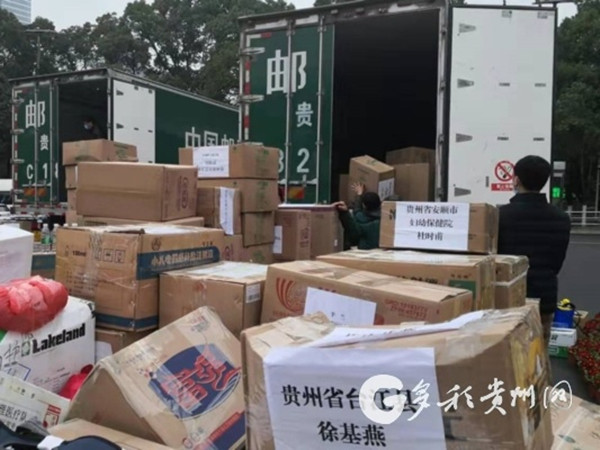 此次貴州省郵政局派出4輛車負責運送所有物資。在此之前貴州郵政已3次運送物資前往湖北。