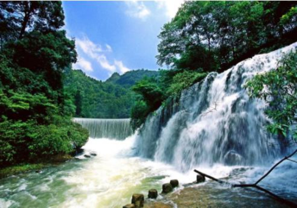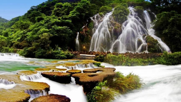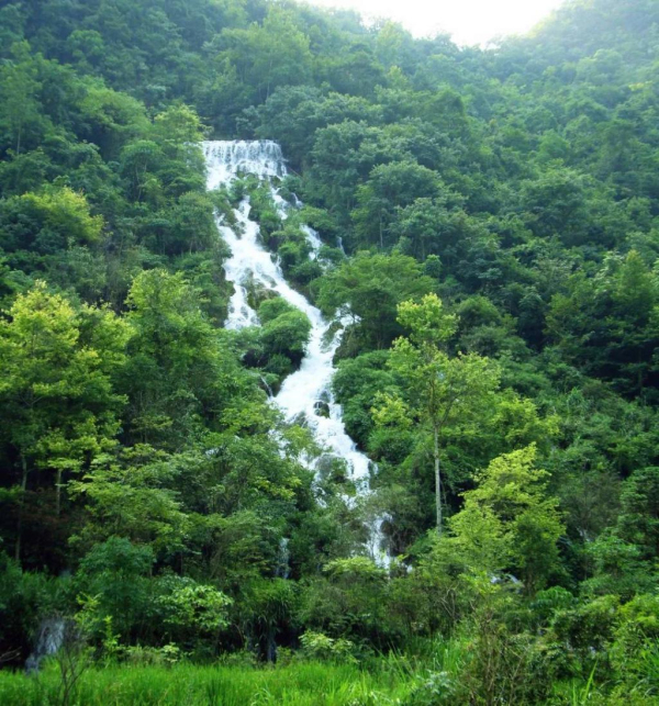 68級跌水瀑布,層層疊疊的瀑布淙淙嘩嘩傾瀉而下。因為河床和兩岸景色千變萬化,所以每級瀑布都呈現出不同的風貌,極為壯觀。