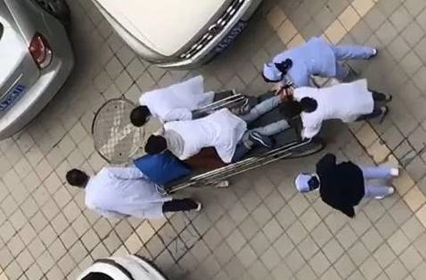 話音剛落,醫護人員立即將患者放在平車上,為了爭取搶救時間,值班醫生唐章鋁則跪在平車上繼續為病人做心肺復蘇,其他醫護人員一路飛奔將病人推往ICU,并在途中一直大聲呼叫患者名字。