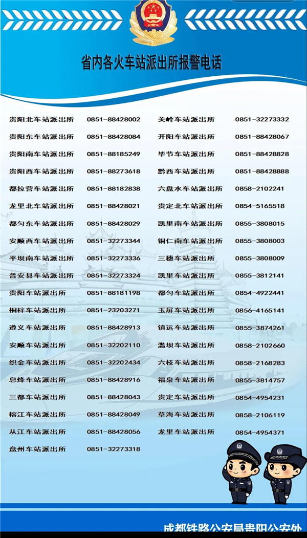 貴州省內各火車站派出所報警電話: