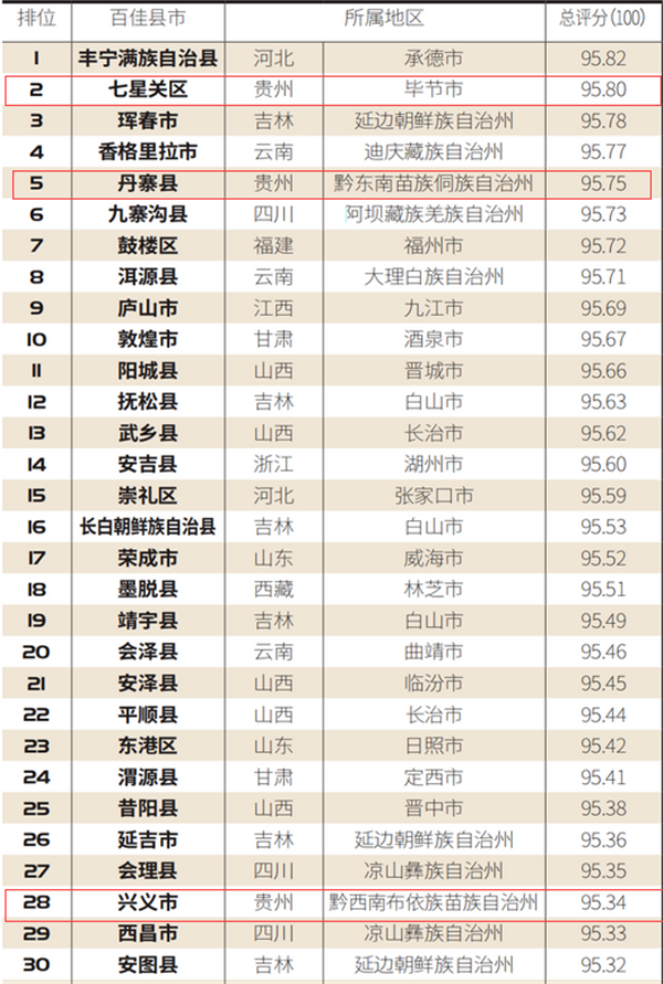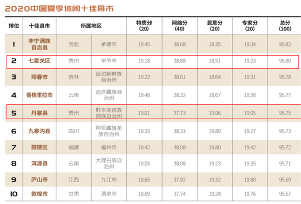 “2020中國夏季休閑百佳縣市”全名單