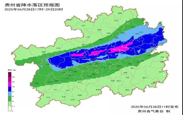 今天傍晚到明天白天,省的中北部地區陰天間多云有陣雨或雷雨,其中,六盤水市東部、畢節市南部、貴陽市北部、遵義市南部、銅仁市中南部、黔南和黔東南兩州的北部局地有大雨或暴雨,部分鄉鎮有大暴雨;