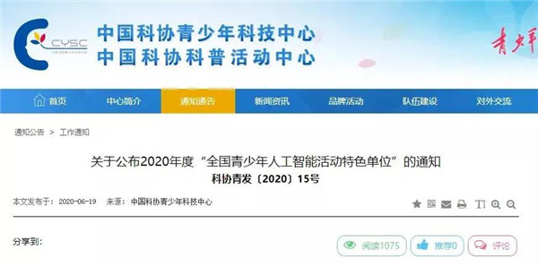 據(jù)了解,為貫徹落實(shí)國務(wù)院在《新一代人工智能發(fā)展規(guī)劃》中提出的任務(wù)要求,推動中小學(xué)校探索建立人工智能相關(guān)課程的教育模式,中國科協(xié)青少年科技中心與中國青少年科技輔導(dǎo)員協(xié)會聯(lián)合主辦了全國青少年人工智能活動特色單位評選。自2020年度“全國青少年人工智能活動特色單位”申報(bào)工作啟動后,全國各省市自治區(qū)共1386個(gè)單位正式提交申報(bào)材料,經(jīng)省級審核、資格審查和專家評選,共1000個(gè)單位被評選為特色單位。