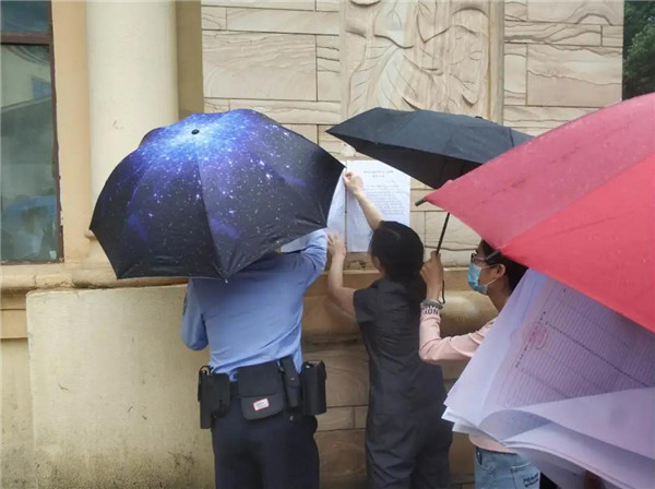 法院受理案件后,依法向被執行的房開公司送達執行通知書、報告財產令、限制消費令、財產申報表等法律文書,責令其限期履行生效法律文書確定的義務。并對被執行人名下財產進行調查,其銀行賬戶有存款的依法凍結劃撥,對被執行人名下登記有房產的,及時采取查封措施。鐘山區人民法院在6月18日對某房開公司名下1600多套房產進行查封后,今日又對另一房開公司名下300余套房產進行查封。在查封公告期滿后,將對未提出異議的房產依法處置,所得拍賣款項用于繳納欠繳的土地出讓金。