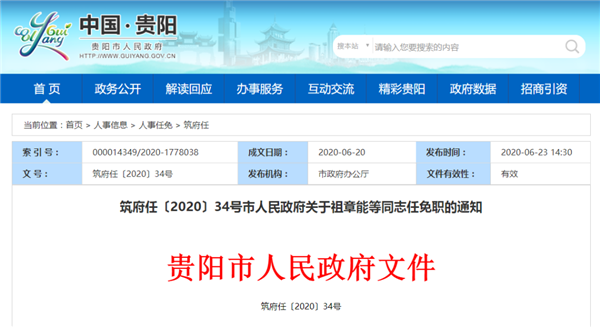 祖章能同志任貴陽市發(fā)展和改革委員會副主任(試用期一年)。