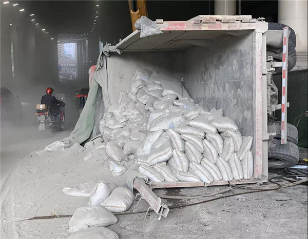 記者了解到,事故發生后,貨車上裝載的水泥全部灑在了路面上。事故現場附近地鐵三號線施工人員聞訊趕來用鏟車將水泥鏟到了路邊,保證了路面的暢通。