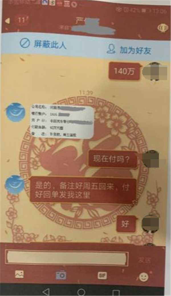 “貨款68萬元整,周五回款。”在還未加好友的情況下,“嚴某”要求陳女士向南安市某貿(mào)易有限公司的賬戶轉(zhuǎn)賬68萬元,說這個賬戶與食品公司有合作,雙方在合作期間需要存在資金往來,并強調(diào)這筆款項“急需付款”。隨后,陳女士沒多想就將這68萬元從中國工商銀行貴州省新支行打到了對方指定的賬戶。