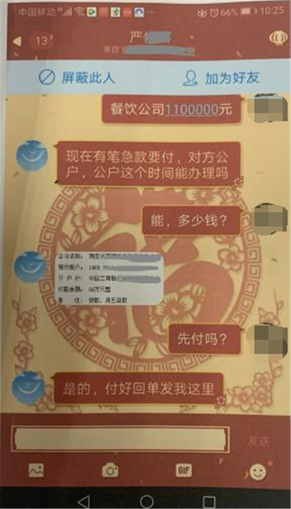 然而,就在當天打款后不久,這名“嚴某”又以“補貨款”的名義,再次要求陳女士向一家河南的商貿(mào)公司戶頭上打入92萬元。“嚴某”的貪婪,終于讓陳女士察覺到異樣。于是,陳女士趕緊撥通了公司法人,也就是真正的嚴某的電話,經(jīng)核實,這位“嚴某”就是個十足的“冒牌貨”。隨后,陳女士趕緊報警向警方描述了受騙的經(jīng)過。