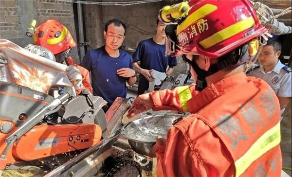 9月6日下午,在黔西南州貞豐縣者相鎮,一名在打面過程中操作失誤,導致雙手被卡進打面機,情況緊急。事發后,當地消防人員及時趕到,對機器進行破拆營救。
