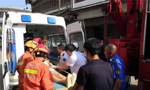 40余分鐘后,被困女子右手被成功取出,由現場醫護人員并進行包扎治療。10分鐘后,被困女子左手被成功取出。指戰員在現場醫護人員的指導下將被困女子送上12 急救車接受救治。