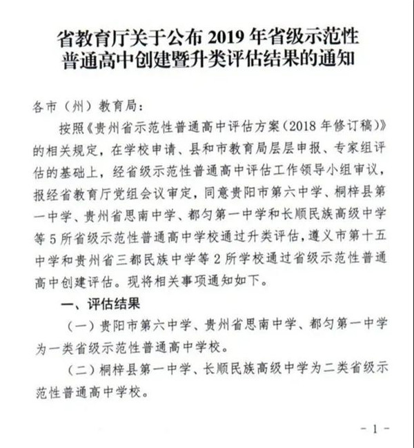 最新消息!貴州又增3所一類省級(jí)示范性高中