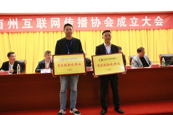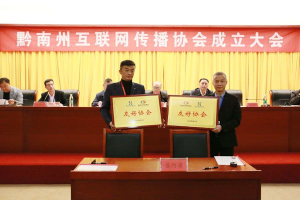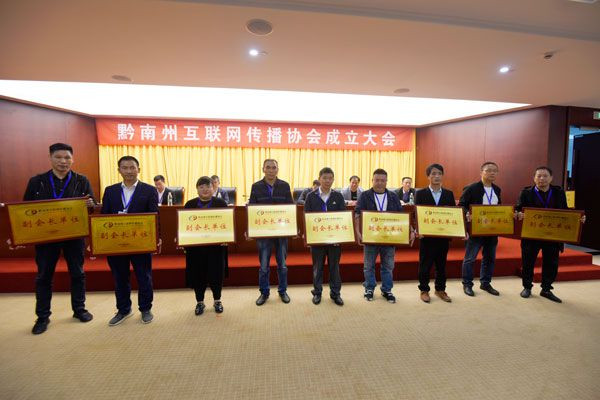 在成立大會上,協會領導班子成員集體亮相。大會為協會顧問頒發聘書,為常務副會長單位、副會長單位、理事單位授牌,向全體網民發出了《網聚“新”力量 筑夢“新”擔當》的倡議書。黔南州互聯網傳播協會與遵義市新媒體聯合會締結成為友好協會。