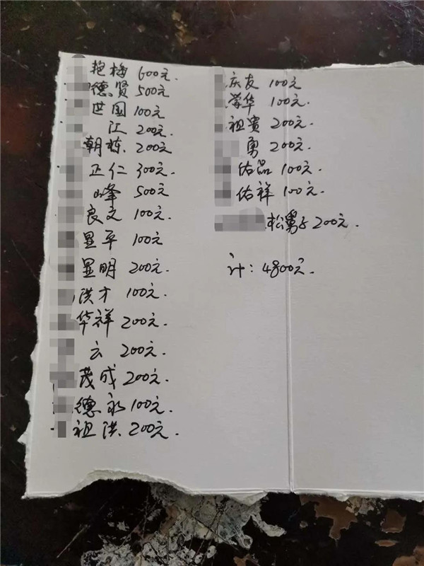 好在按照當地的風俗,送的禮金不是很多,一般的鄰里就100元,但全部加起來也有不少了,4800元只是禮金,再加上其他支出,那一個月的工資完全不夠。