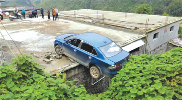 10月8日,冊亨縣公安局交警大隊(duì)冗渡中隊(duì)接到村民報警稱,在該鎮(zhèn)南俄村坡佑組一名新手女司機(jī)在倒車過程中,將一輛轎車開到居民樓房頂,懸掛半空中,現(xiàn)場情況十分危急,請交警前往處置。