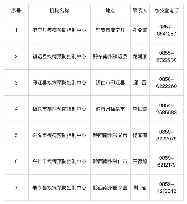 為貫徹落實中央和貴州省委省政府關于擴大核酸檢測的要求,保障重點人群 " 應檢盡檢 "、有需求人群 " 愿檢盡檢 "。貴州省衛生健康委現將新增加的具有相關資質、可以開展新冠病毒核酸檢測的疾控系統新冠病毒核酸檢測機構名單公布如下: