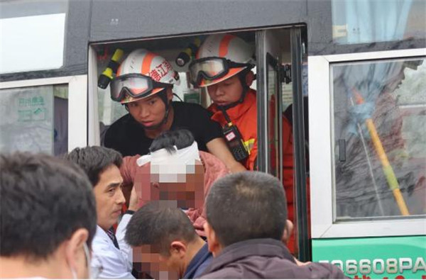 了解情況后,救援人員首先將車上乘客轉移交由現場醫護人員送醫,隨后客車駕駛室進行破拆營救被困司機,經過近 30 分鐘的緊張救援,成功將 8 人救出并送往醫院救治。