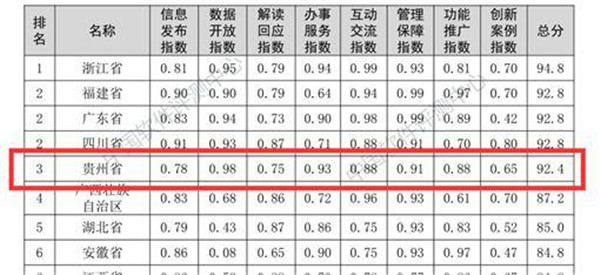 政務微信主辦單位 "" 優秀政務微博主辦單位 "。同時," 全省統一移動應用 " 獲評省級 " 十大 " 優秀創新案例。在省會城市政府網站排名中,貴陽市排名第三。在地市級政府網站排名中,六盤水市、安順市、遵義市進入前 50 名。此外,貴陽市 " 所搜即所想 所得即所需——打造智能化場景化集約化云搜索平臺 提升政務服務水平 " 獲評省會及計劃單列市優秀創新案例,畢節市 " ‘三效合一’搭建脫貧攻堅掌上一體化服務平臺 " 獲評地市級優秀創新案例。