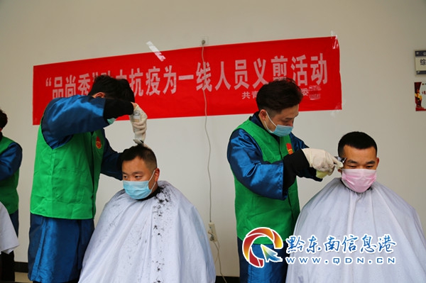 新冠肺炎疫情防控工作開展以來,鎮(zhèn)遠(yuǎn)縣公安局全體民警、輔警一直戰(zhàn)斗在防控一線,加上外面的理發(fā)店都處于關(guān)門狀態(tài),他們難以顧及個人儀表形象,很多人還擔(dān)心這場疫情防控下來,自己變成了“金毛獅王”。共青團鎮(zhèn)遠(yuǎn)縣委了解到這個情況后,立即向全縣有理發(fā)手藝的志愿者發(fā)出倡議,得到“品尚秀”、“嘉年華”等理發(fā)店理發(fā)師傅的積極響應(yīng),他們主動上門,希望用自己的手藝,為打贏這場疫情阻擊戰(zhàn)貢獻自己微薄的力量。當(dāng)天,理發(fā)師傅們揮舞著手中消過毒的工具,為60余名民警、輔警打造出一個個靚麗的發(fā)型。