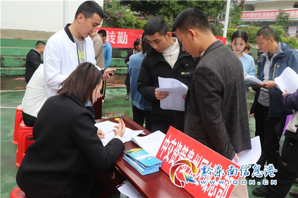 參加招聘的群眾認真聽取工作人員講解招聘信息