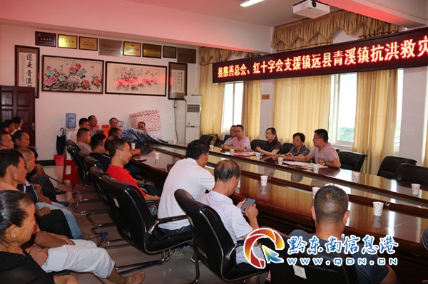 發放儀式于上午10:30正式開始。會上,鎮長楊權通報了6月以來青溪鎮的受災及救災情況,對受災群眾表示了同情并鼓舞他們積極生產自救。隨后,縣民政局局長伍丹作了講話,她表示,此次物資雖然不多,但卻飽含了黨委、政府對受災群眾的關懷,希望大家能珍惜并隨時做好自家災情防范。之后,縣紅十字會會長、姚灣村駐村工作隊隊長唐維漢對此次物資的來源做了進一步說明,此次物資雖然分配到各鄉鎮比較少,但卻是來自中國紅十字會總會、香港特區紅十字會和貴州省紅十字會三個單位,意義重大。
