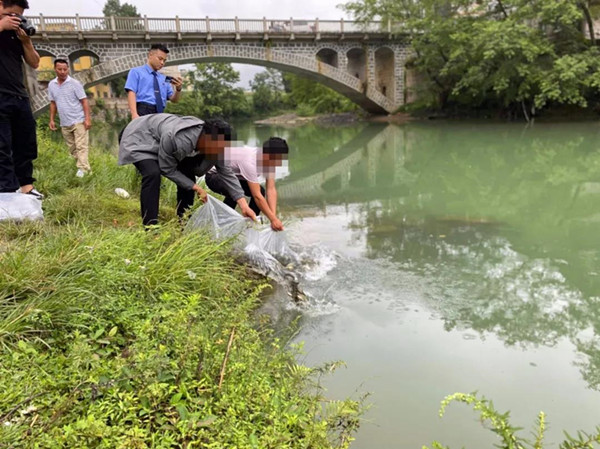 據(jù)介紹,9月9日,龍某、蔡某二人花2000元購(gòu)買(mǎi)了草魚(yú)、鯉魚(yú)、白鰱等魚(yú)苗共1000余尾前往龍江河投放。鎮(zhèn)遠(yuǎn)縣檢察院檢察官根據(jù)《中華人民共和國(guó)刑法》第三十七條之規(guī)定,對(duì)龍某、蔡某非法捕撈水產(chǎn)品一案在龍江河岸當(dāng)場(chǎng)作出不予起訴的處理決定。派出所民警、農(nóng)業(yè)農(nóng)村部門(mén)工作人員及龍某、蔡某共同將魚(yú)苗投放進(jìn)龍江河中。該案的處理方式得到群眾認(rèn)可,起到了良好的宣傳教育效果。
