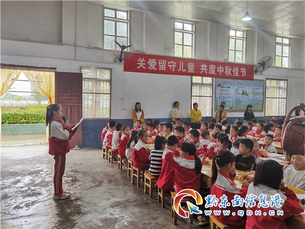 參加關(guān)愛活動(dòng)的老師們化身愛心志愿者和孩子們齊聚一堂。桌上擺放有序的中秋美食,正等著他們的光臨。孩子們秩序井然的坐在位置上,聆聽來自學(xué)校大家庭的節(jié)日祝福。