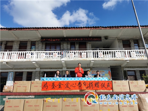 鴻基金會來到兩校進行愛心捐贈,兩校的學生每人都收到了份特殊的禮物——“愛心書包”大禮包。本次捐贈儀式分別在兩校舉行,出席儀式的有縣教科局和金堡鎮兩家黨政主要負責的同志。