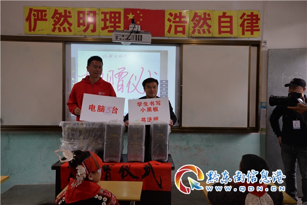 據了解,本次捐贈儀式上不僅為學生們送來了“愛心書包”、電腦、體育器材等物品,還為兩校的其中28名貧困留守學生帶來了一對一的幫扶。