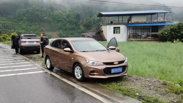 民警通過行車記錄儀看到,香檳色小客車在經過一處彎道時速度過快,加之雨天路滑車輛失控發生了漂移,整個右側車身與對向由李某駕駛的銀色小客車尾部發生刮擦。