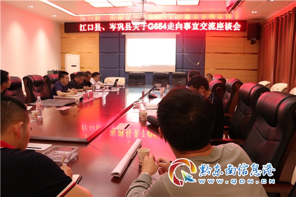 本網訊 5月8日,江口縣交通運輸局、岑鞏縣交通運輸局攜兩家設計單位在岑鞏縣召開G654國道走向事宜交流座談會議。