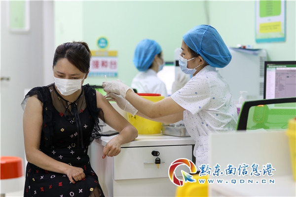 本網訊 6月24日,在貴州省黔東南苗族侗族自治州岑鞏縣婦幼保健院接種點,接到電話或短信提示的市民前來接種第二劑新冠疫苗。