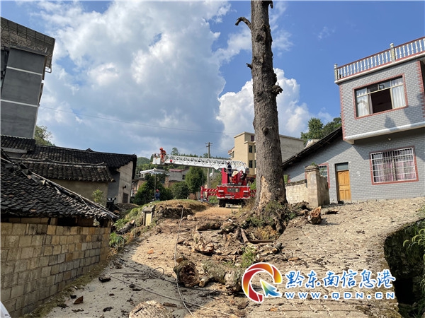 消防指戰(zhàn)員與政府工作人員疏散周圍群眾做好警戒后,利用云梯車、機(jī)動(dòng)鏈鋸進(jìn)行清理,歷經(jīng)幾個(gè)小時(shí)的努力,這個(gè)干枯的大古樹終于倒在預(yù)定的區(qū)域了,成功排除了安全隱患,群眾心里也高興,連連向指戰(zhàn)員道謝。(張超)