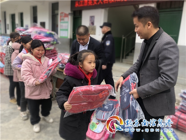 捐贈現場,丙妹鎮政法委書記、丙妹鎮滾玉村脫貧攻堅指揮所所長梁翠河,愛心人士從江漂亮女人名妝總經理賴志斌將愛心物資有序發放到學生和教師手中,學生們收到愛心物資后開心不已,喜笑顏開。