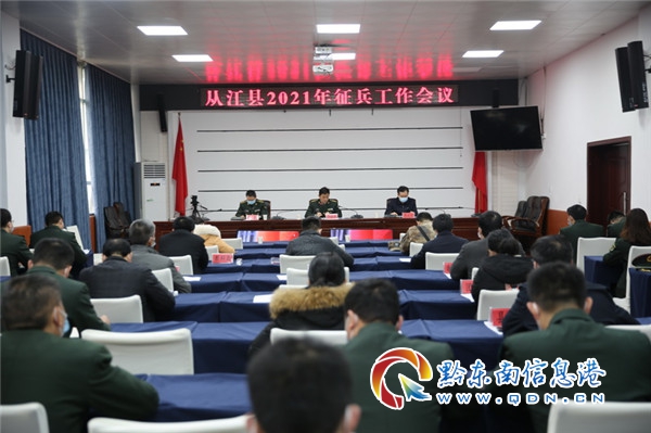 本網訊 近日,從江縣2021年征兵工作會議在縣人武部六樓會議室召開。縣征兵工作領導小組副組長、縣人民政府副縣長、公安局長陳遠劍出席會議并講話。會議由征兵工作領導小組副組長、人武部政治委員畢戩旭主持。縣征兵工作領導小組成員單位負責人、各鄉鎮武裝部部長、干事參加會議。