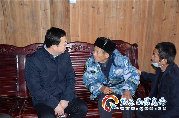 本網訊 在新春佳節(jié)即將到來之際,2月3日,黔東南州委副書記、州長羅強,黔東南州委常委、從江縣委書記張定超一行到從江縣谷坪鄉(xiāng)走訪慰問抗美援朝老兵潘學珍,為他送去了新春的祝福和慰問金。從江縣委副書記、縣人民政府縣長周哲云,縣退役軍人事務局、谷坪鄉(xiāng)黨委政府有關同志陪同慰問。