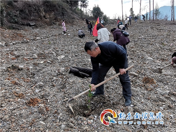 本網訊 人勤春來早,植樹添綠正當時。2月18日,節后上班第一天,從江縣貫洞鎮黨委政府積極組織全鎮黨員干部職工和村兩委班子共計120余人到宰門村開展“國土綠化建設生態文明”新春義務植樹添綠活動。