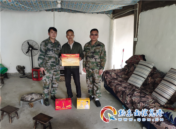 本網(wǎng)訊 “一人當(dāng)兵,全家光榮。”一張喜報,不僅是榮譽的象征、成長進(jìn)步的見證,也承載著每個軍屬的期盼與慰藉。從江縣翠里鄉(xiāng)就出了一名有靈魂、有本事、有血性、有品德的“四有”優(yōu)秀士兵戴時刻。喜報一到,鄉(xiāng)人武部部長鐘信平和退役軍人服務(wù)站的工作人員馬上就給他的家人報喜,送去喜報和慰問禮品,向其表達(dá)了祝賀,并詳細(xì)了解軍人及其家屬生活、工作、身體等情況。