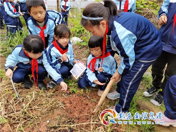 活動中,班主任老師向孩子們講述節氣、農事、農諺的相關知識,并引導他們挖地、松土、播種、填土、澆水,孩子們一起分工、相互配合,三個一組,五個一群開始組隊種植,將一顆顆小種子播撒在肥沃泥土地里,將一株株幼苗扦插在希望的土地上,個個忙得不亦樂乎,每個人的心里盼望著種子、幼苗快快長大,期待碩果累累。