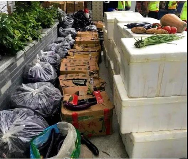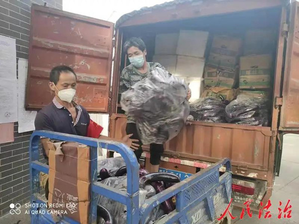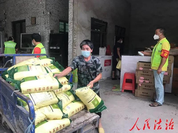 6月12日下午15時許,一輛載滿大米、雞蛋、南瓜、茄瓜等農(nóng)產(chǎn)品的貨車到達廣州環(huán)城高速公路入口,與早已在此等候的廣州封控區(qū)工作人員匯合,在警車的帶領(lǐng)下,把物資送到荔灣區(qū)中南街道海中村,由群防共治小組分派到居民家中。