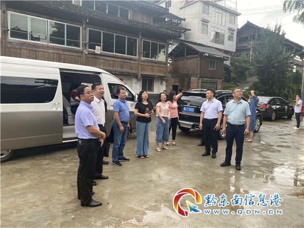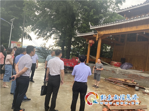 本網訊 6月28日下午,黔東南州民族宗教事務委員會主任胡素灤、副主任羅安春一行來到擺翁村調研瑤族藥浴體驗中心接待樓項目建設情況,對項目進程提出指導建議。從江縣委常委、縣人民政府副縣長周慧林同志,縣民宗局局長敖家輝,翠里鄉黨委書記谷喬鋒、鄉長韋錦明陪同調研。