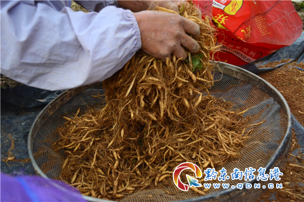 放眼望去,無論男女老幼都在不停的忙碌著,他們坐在矮凳上,將細小的太子參挖出來,抖掉泥塊再放進篩子里,等篩子裝滿了,再搓一搓、篩一篩、挑一挑,最后裝袋上稱,一切都在井然有序地進行著。