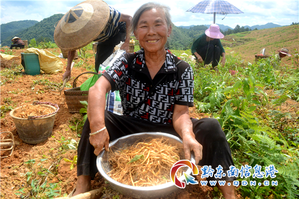 眼下正是農閑時節,大多數村民在家都有時間,許多人都想趁此時間找些事做,貼補家用。白果村白橋組黃水英便是其中一位。“我們在家里也沒有事情干,所以就來這里挖太子參。現在社會好,經常都有零工可以做,在這里我每天能挖60斤左右,有120多元,不僅能給孫子買點糖吃,還能補貼點家用,我很滿足了。”黃水英高興地說。