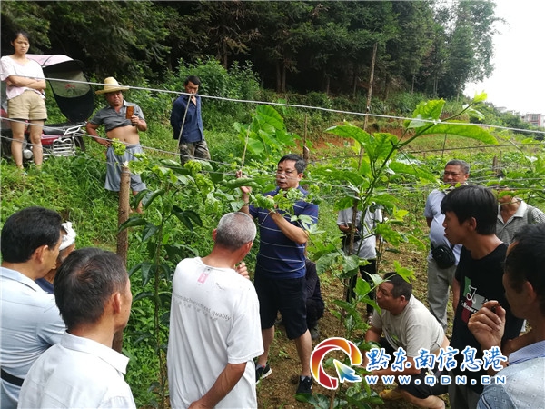 本網訊 7月11日,從江縣農業局組織高級農藝師楊興軍深入到翠里鄉高文村百香果、碰柑種植基地,進行現場技術指導。