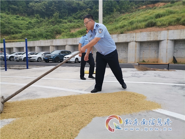 黔東南州公安局交警支隊高速六大隊大隊長張華介紹說。“今年水稻豐收,但抓住晴好天氣打谷和曬干,才能豐收在握。為幫助農(nóng)民搶時曬干稻谷顆粒歸倉,我們讓出地壩、籃球場供農(nóng)民曬糧,大隊和民警輔警的車輛也盡量不占院壩。”
